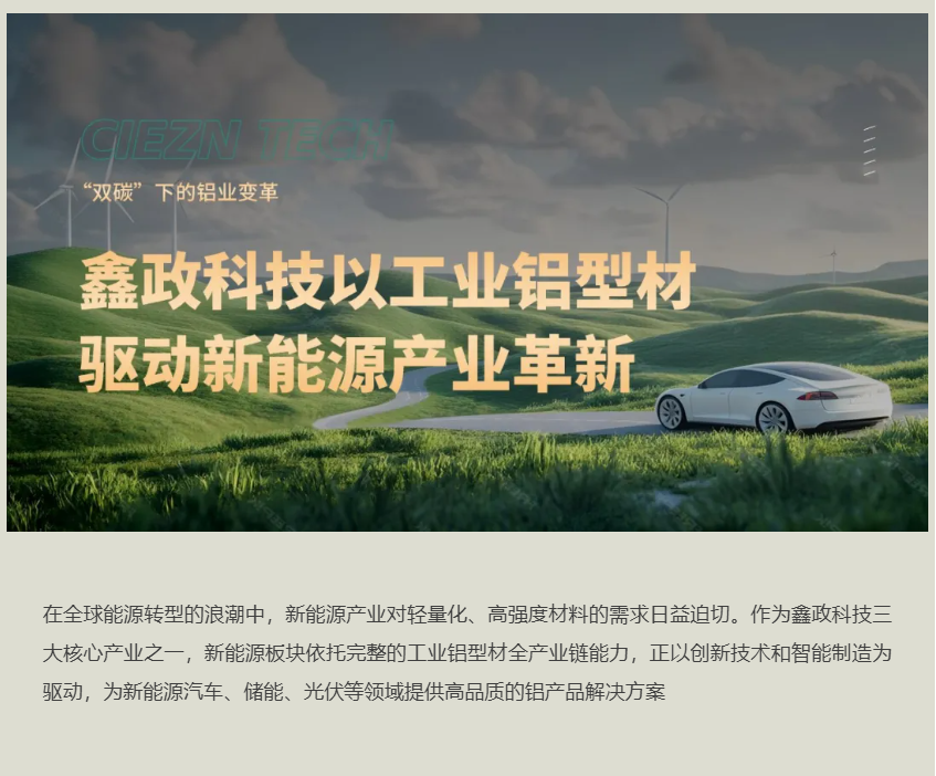 立足當下,展望未來。鑫政科技將繼續(xù)深耕工業(yè)鋁型材領域,以技術(shù)創(chuàng)新為驅(qū)動,以客戶需求為導向,在新能源產(chǎn)業(yè)的廣闊藍海中,與合作伙伴攜手共進,推動中國新材料創(chuàng)新與發(fā)展。
